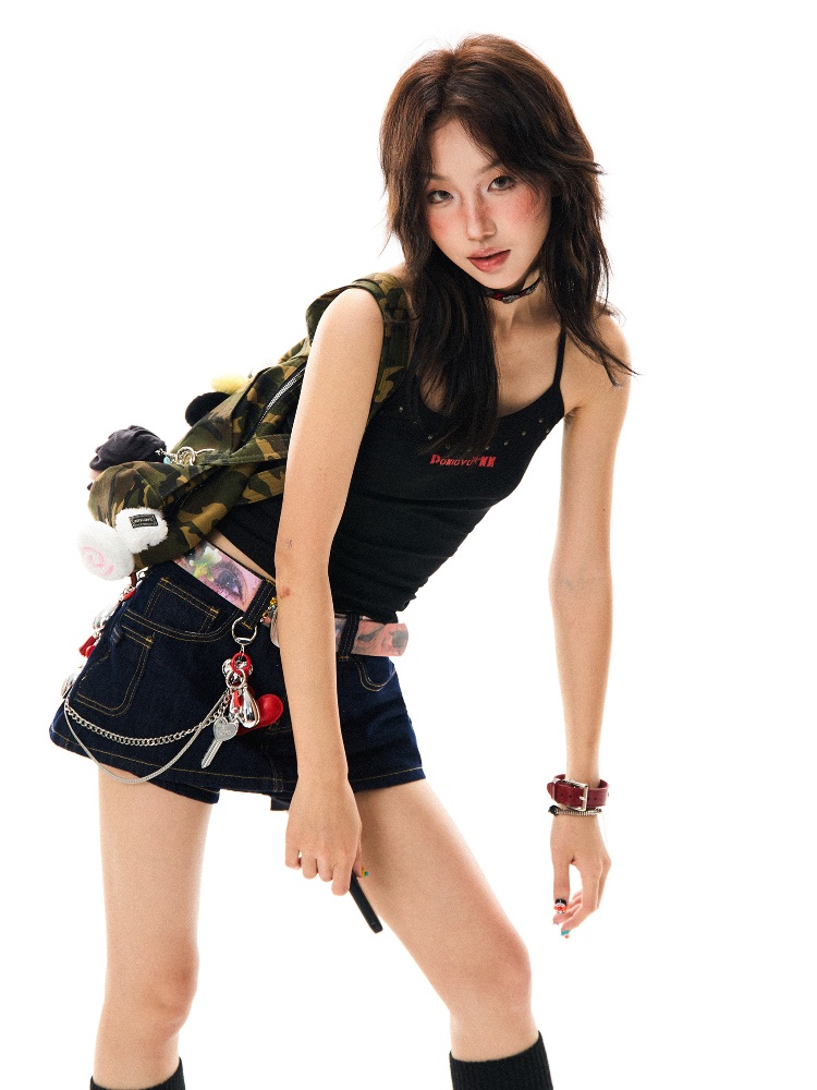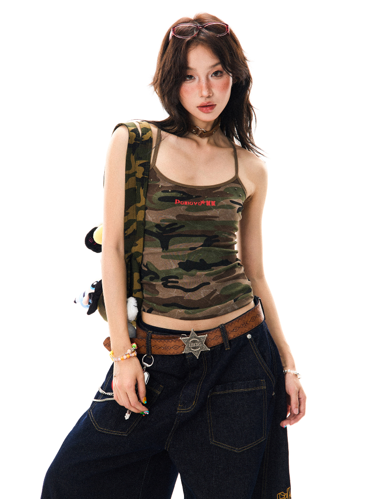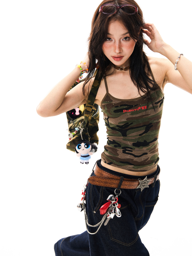 Elevate your summer wardrobe with our Women’s Retro Camouflage Studded Camisole, a sexy slim-fit top that perfectly embodies Y2K fashion. Crafted for comfort and style, this striking camisole features eye-catching studded details and a trendy camouflage pattern, making it an essential piece for any fashion-forward woman. Whether you’re dressing it up for a night out or keeping it casual for a day in the sun, this versatile top will turn heads. Don’t miss out on this stylish addition—add it to your cart today!