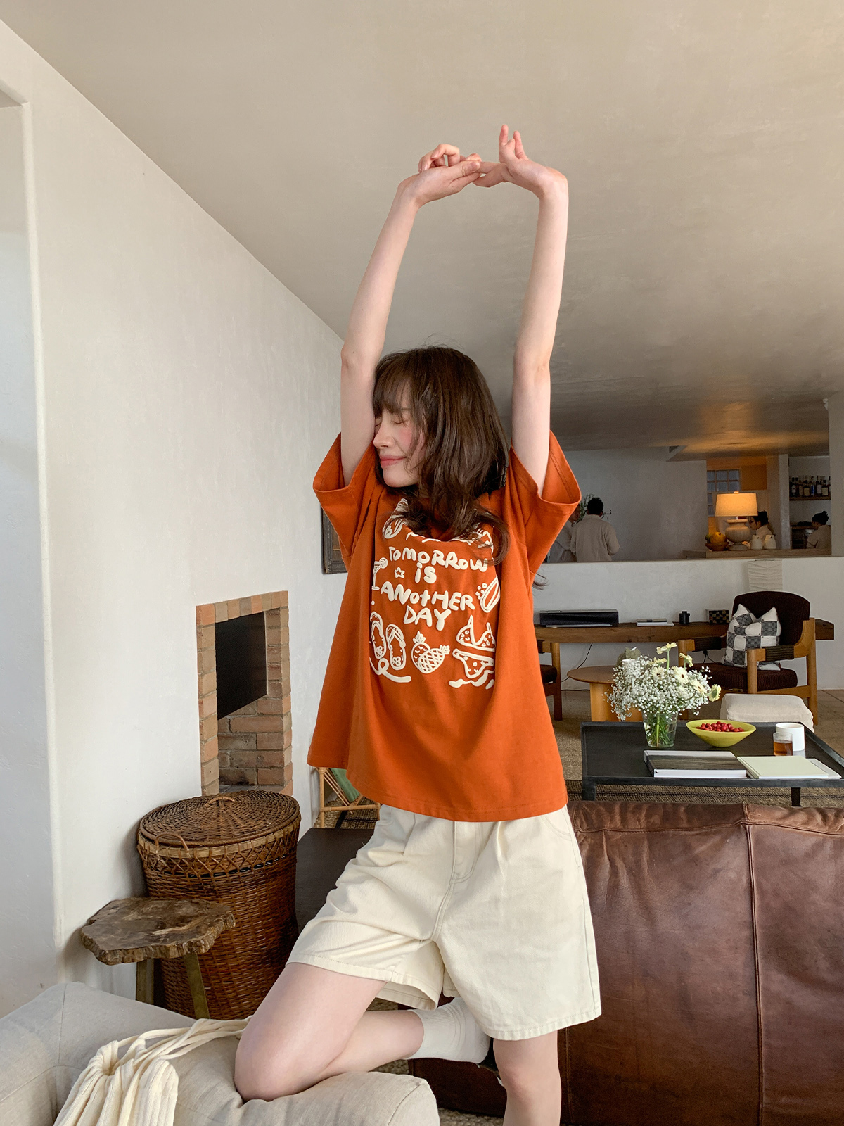 Concert Outfit Women Summer Loose Slim Neck Printed T- shirt Simple Element, Short Sleeve, Casual