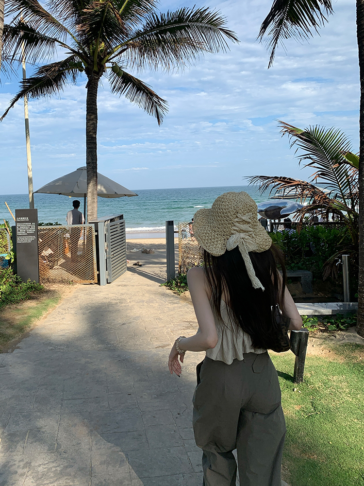 Concert Outfit Women Summer Beach Sunshade Woven Fisherman Hat Ties South France Holiday