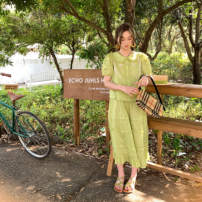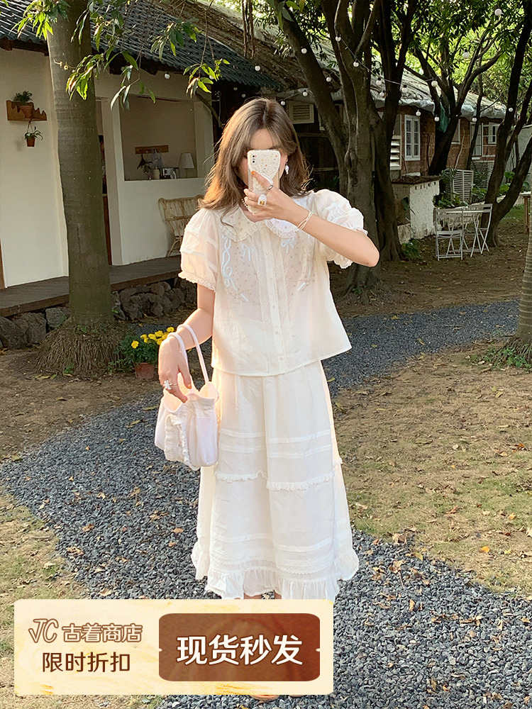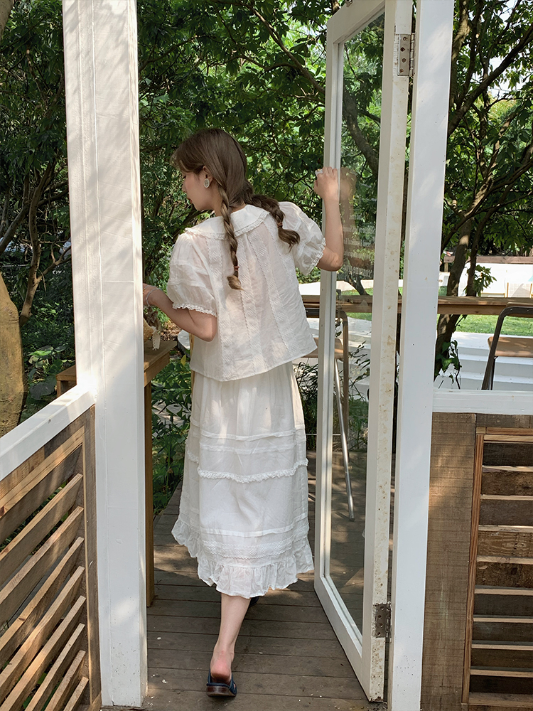 Concert Outfit Women Summer Lace Flared Midi Skirt Vintage Cloud, Lightweight Linen