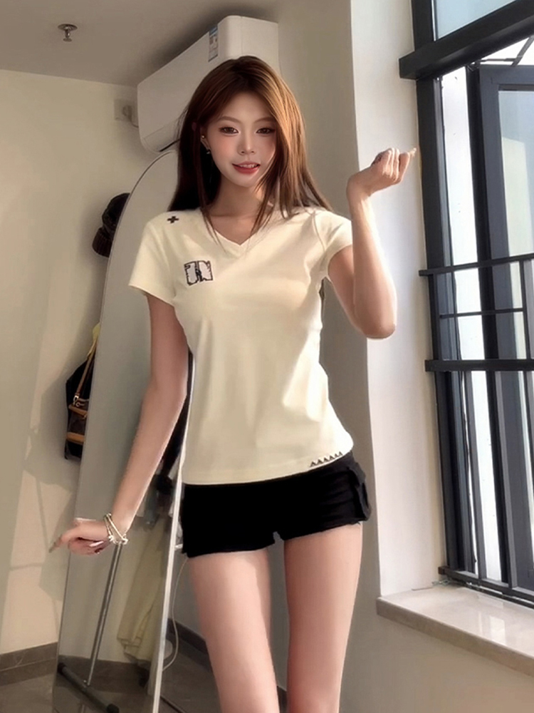 Elevate your summer wardrobe with our Women’s V-Neck Spicy Girl T-Shirt, designed for a flattering fit that enhances your silhouette. This white casual short sleeve top combines comfort with American style, making it a versatile addition to any outfit—perfect for both laid-back days and chic outings. Crafted for a slimming effect, it pairs beautifully with jeans, skirts, or shorts. Don’t miss out on this must-have fashion staple—add it to your cart today!