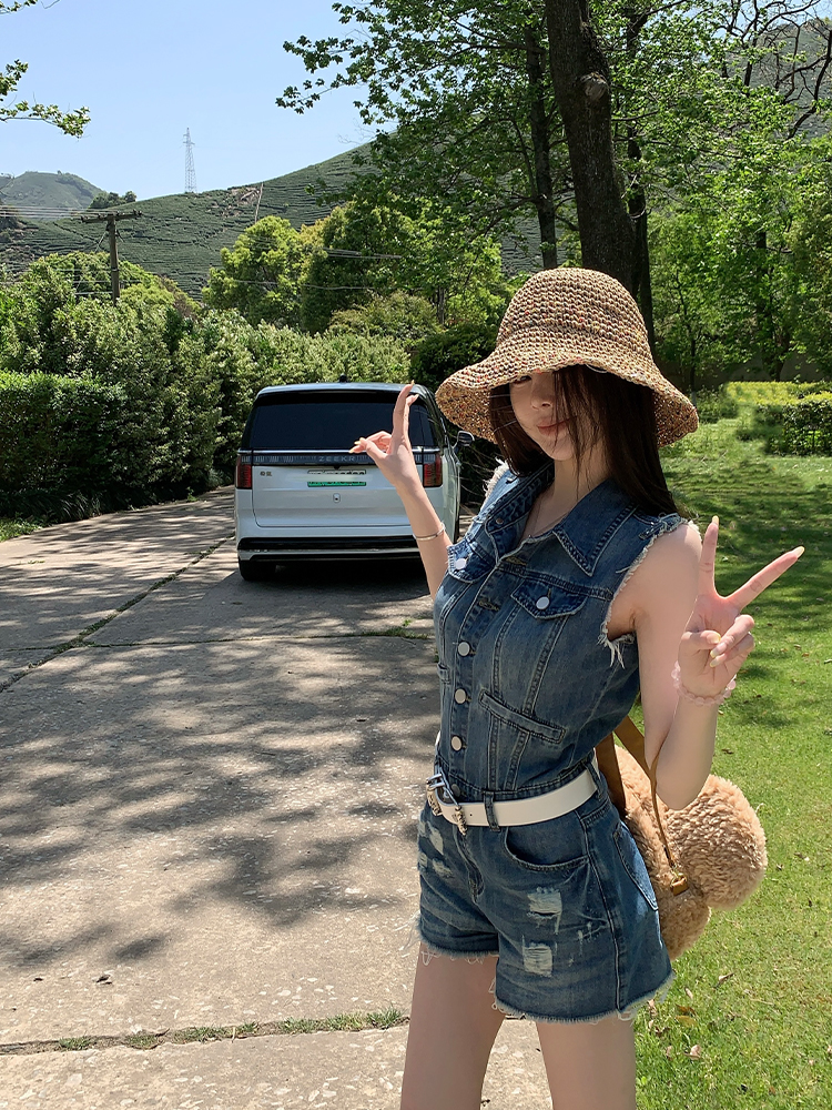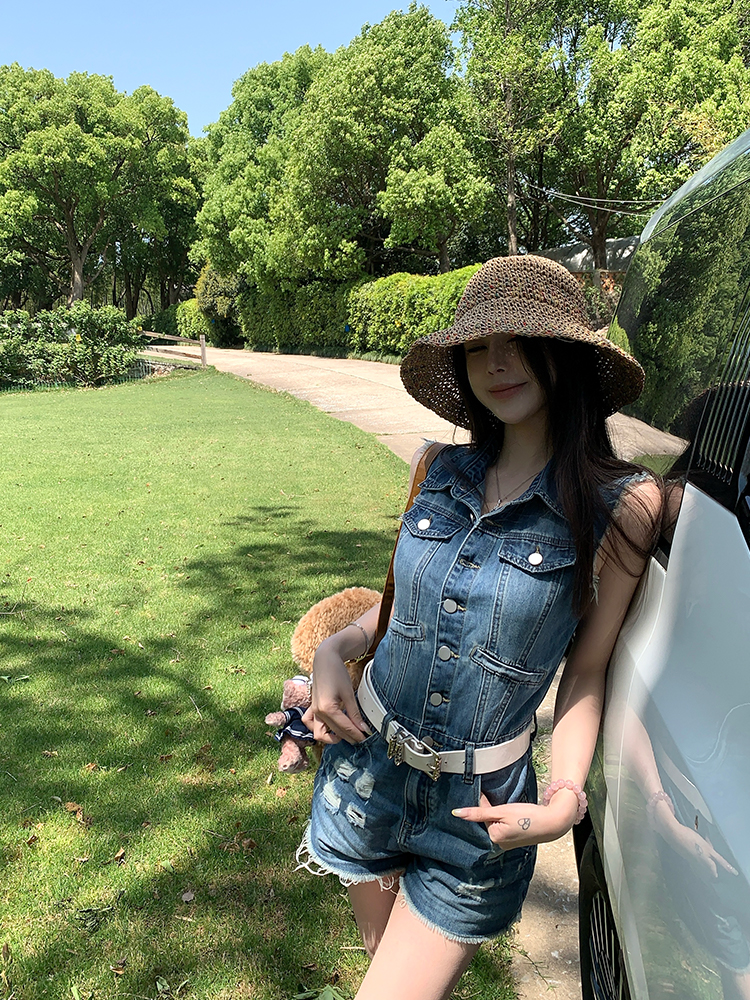 Concert Outfit Women Vintage Ripped Denim Jumpsuit Summer Cool Sister Look, pired