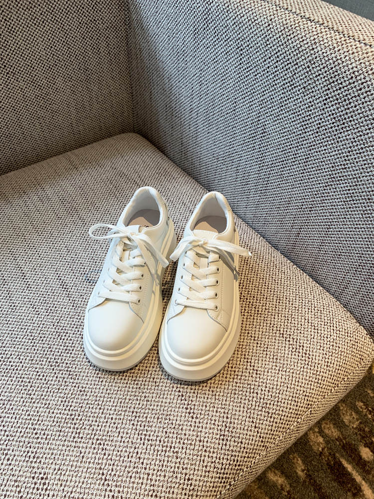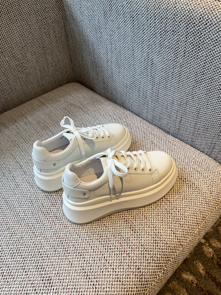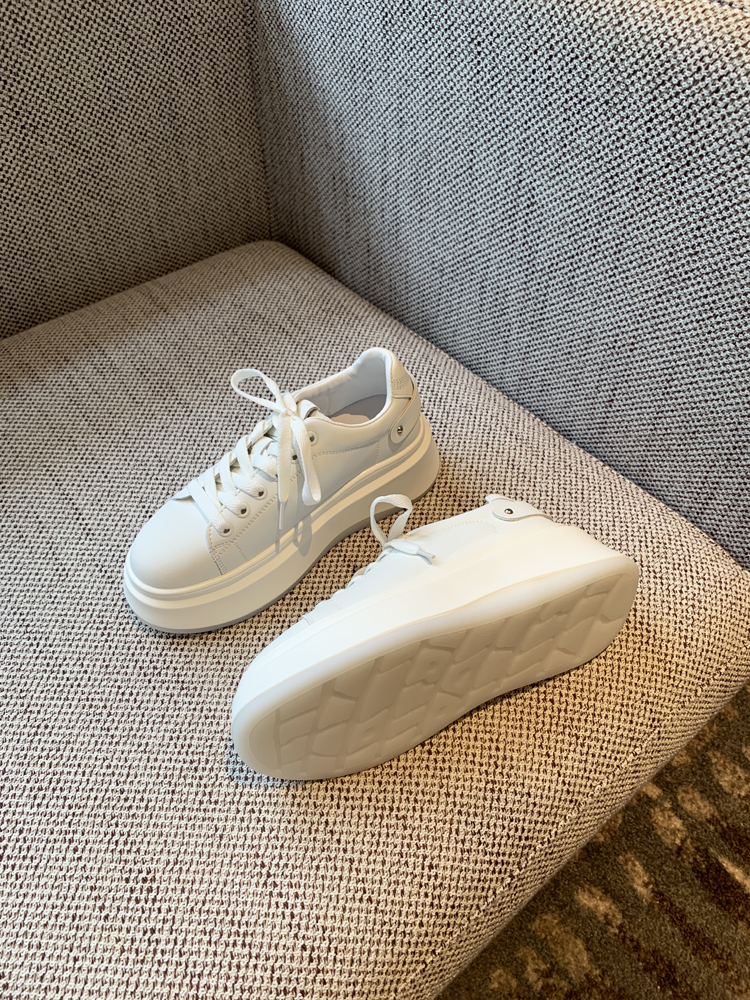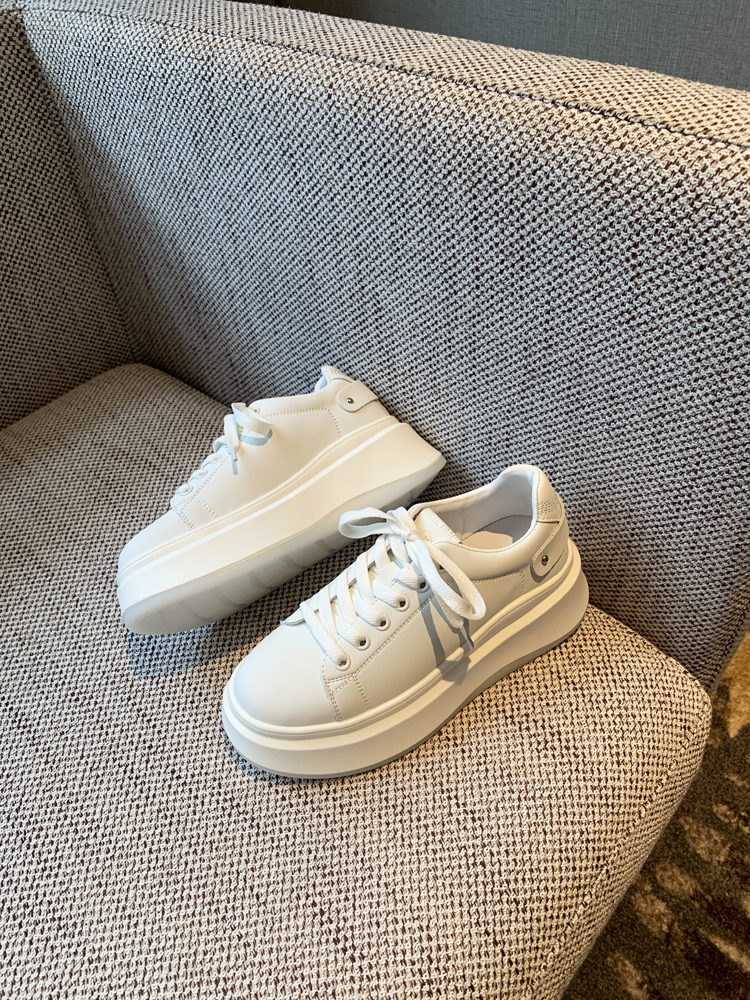 Step into style and comfort with our Women’s White Lace-Up Platform Sneakers, featuring a trendy thick-soled design that elevates your casual look. Crafted from genuine leather, these sneakers offer a perfect fit and exceptional durability, making them ideal for everyday wear or sporty outings. The lace-up closure ensures a secure fit, while the chic platform adds height without compromising on comfort. Don’t miss out on this must-have addition to your wardrobe—add to your cart now and redefine your casual footwear collection!