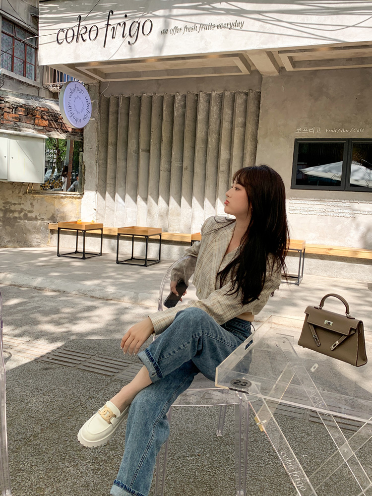 Concert Outfit Women White Thick Soled Slip On LoafersBritish Genuine Leather Spring Summer Footwear