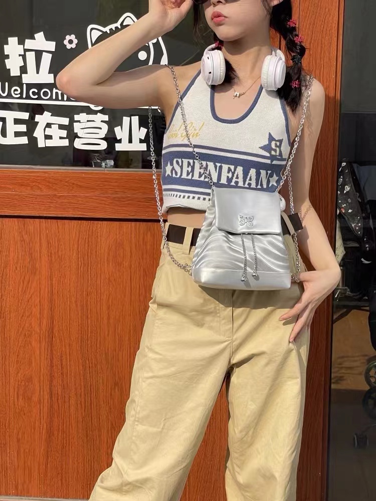 Concert Outfit Y2K Butterfly Chain Backpack Women Silver Small Bag, Sweet Cool Girl